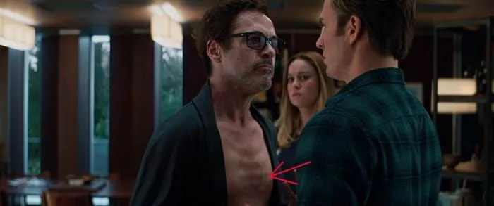 1. เมื่อตอนที่ โทนี สตาร์ค ดึงเครื่องปฏิกรณ์อาร์ค ออกจากอกเพื่อส่งให้กัปตัน คุณยังสามารถเห็นรอยแผลเป็นจากเครื่องเวอร์ชั่นเก่า ที่เคยฝังอยู่ที่หน้าอกของเขาได้