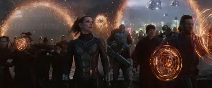 10. เดอะวอสป์ โผล่ออกมาจากช่องวาร์ปขนาดจิ๋วด้วยร่างหดตัว แล้วค่อยกลับมาเป็นขนาดปกติ