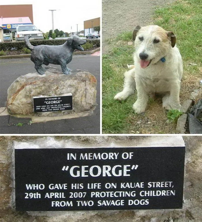 1. นี่คือ จอร์จ สุนัขพันธุ์แจ็กรัสเซลล์ ที่ได้ช่วยเด็กๆ เอาไว้ถึง 5 คน จากการถูกสุนัขพิตบูล 2 ตัวจู่โจมในประเทศนิวซีแลนด์ จนผู้คนสร้างอนุเสาวรีย์ให้มัน