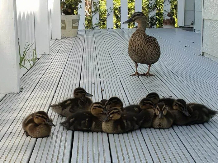 5. แม่เป็ดตัวนี้มาขออาหารกิน และวันต่อมา เธอก็พาลูกๆ เหล่านี้มากินด้วย แถมยังยืนดูด้วยความภาคภูมิใจ