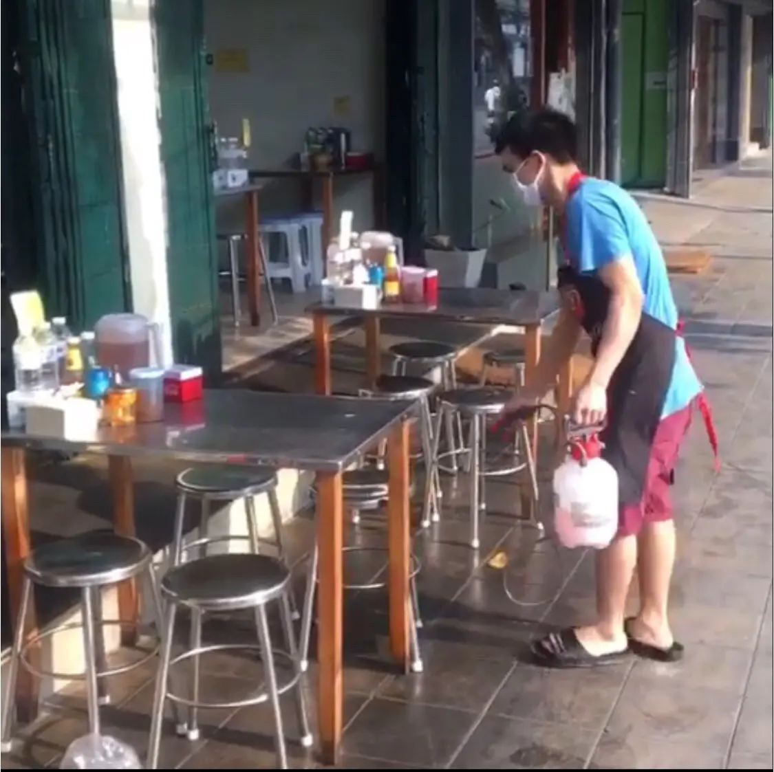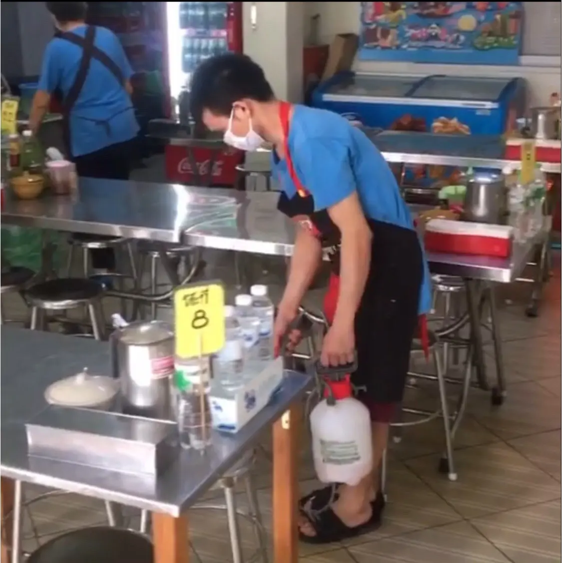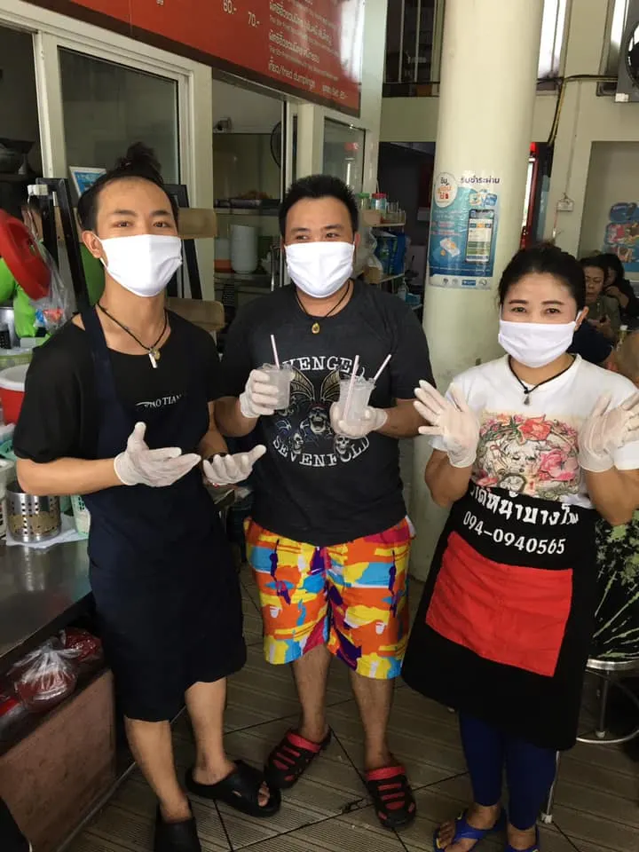 พนักงานกำลัง ช่วยกันปัดกวาดเช็ดถู เพื่อฆ่าเชื้อ ป้องกันโควิด-19 เห็นภาพแบบนี้แล้ว รู้สึกดีจริงๆ ที่ทางร้านค้าให้ความสำคัญกับความปลอดภัยของลูกค้า เลยอดไม่ได้ ที่ต้องวนรถกลับมาเก็บภาพสักหน่อย และก็ต้องสั่งราดหน้ามากิน ด้วยความสะอาด เสมอต้น เสมอปลายของทางร้าน จึงเป็นอีกเหตุผลหนึ่งที่ทำให้ ราดหน้าบางโพ แห่งนี้ มีทั้งลูกค้าประจำและ ลูกค้าที่นิยมสั่งอาหารทางออนไลน์
