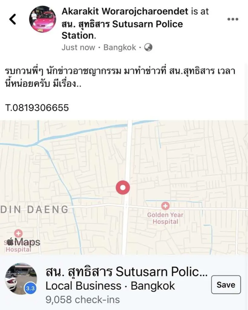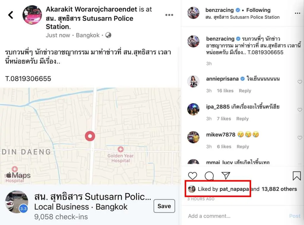 ซึ่งงานนี้ หนุ่มเบนซ์ ได้ประกาศในอินสตาแกรมเอาไว้ว่า รบกวนพี่ๆ นักข่าวอาชญากรรม มาทำข่าวที่ สน.สุทธิสาร เวลานี้หน่อยครับ มีเรื่อง.. T.0819306655
