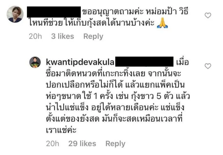 ป.ล. ใครสงสัยว่าของสดแต่ละอย่างมีวิธีเก็บอย่างไรถามมาได้นะคะ จะพยายามตอบให้ได้มากที่สุด อย่างน้อยก็ได้ทำตัวให้เป็นประโยชน์และช่วยกันในช่วงที่มีเวลาอยู่บ้านนิ่งๆ #อย่าตระหนก #ใช้ชีวิตอย่างมีสติ #ดูแลตัวเอง #ปลอดโรคปลอดภัย #อยู่บ้านหยุดเชื้อเพื่อชาติ
