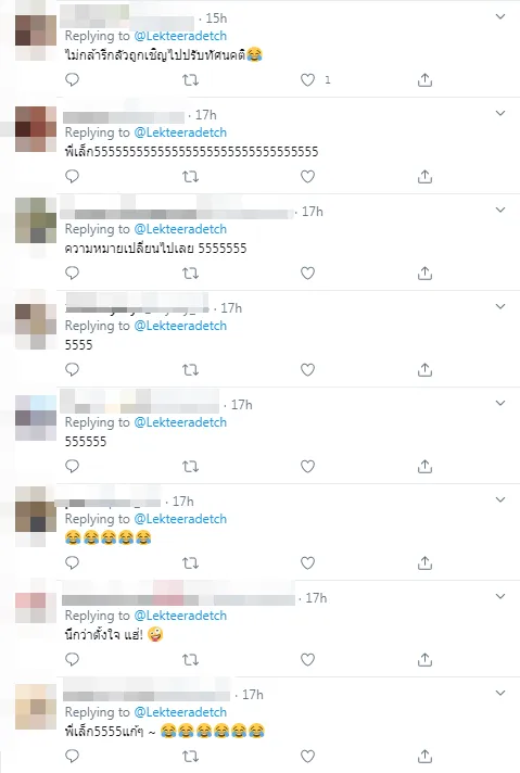 ทั้งนี้ หนุ่มอาเล็ก ก้ได้รีบแก้ไขข้อความดังกล่าวให้ถูกต้อง โดยเจ้าตัวได้โพสต์ข้อความอันเก่าที่พิมพ์ผิดมาทวีตลงในทวิตเตอร์ส่วนตัว พร้อมกับชี้แจงว่า ” ว้อยยยย พิมพ์ผิดชีวิตเปลี่ยน ต้องเป็นทหารหน้าด่านนน ขอโต้ดคับพิมพ์ผิด โอ้ยยยย ตลกกกกกก 55555555555″ ซึ่งก็มีแฟนๆเข้ามาคอมเมนต์ถึงกับฮากันเลยทีเดียว