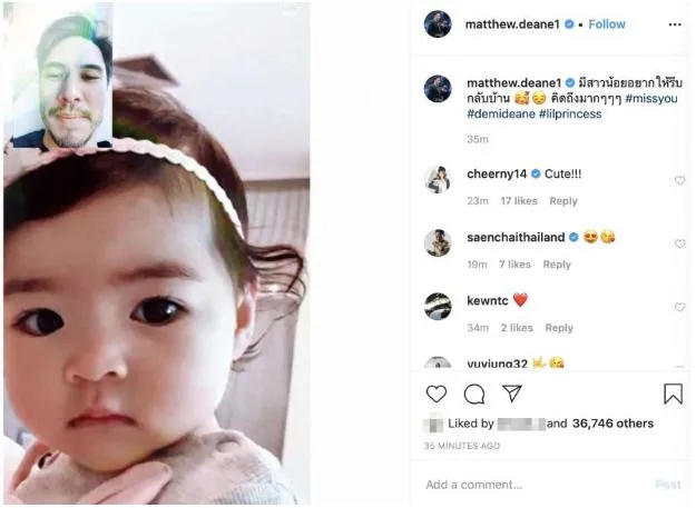 ล่าสุด หนุ่มแมทธิว ได้ออกมาโพสต์รูปภาพวิดีโอคอลกับลูกสาว น้องเดมี่ กำลังใจสำคัญ ที่ทำให้อยากหายป่วยและกลับไปอยู่บ้านนั่นเอง พร้อมระบุข้อความ “มีสาวน้อยอยากให้รีบกลับบ้านคิดถึงมากๆๆๆ”