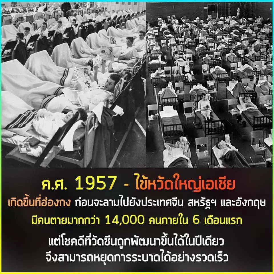 3. ไข้หวัดใหญ่ (พ.ศ.2499-2501) ตาย 2 ล้านคน เป็นโรคไข้หวัดใหญ่สายพันธุ์ใหม่ของ H2N2 ที่กำเนิดในประเทศจีนในปี 2499 และจนถึงปี 2501