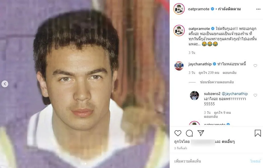 ทำเอาชาวเน็ตและเพื่อนๆ ในวงการบันเทิงเข้ามาแสดงความคิดเห็นกันอย่างต่อเนื่อง อย่างเจ ชนาธิปได้เข้ามาแซวว่า ทำไมหล่อขนาดนี้ แต่ก็มีเพื่อนๆ ในแก๊งได้เข้ามาแซวจนเจ้าตัวเสียอาการไปเลยเหมือนกัน