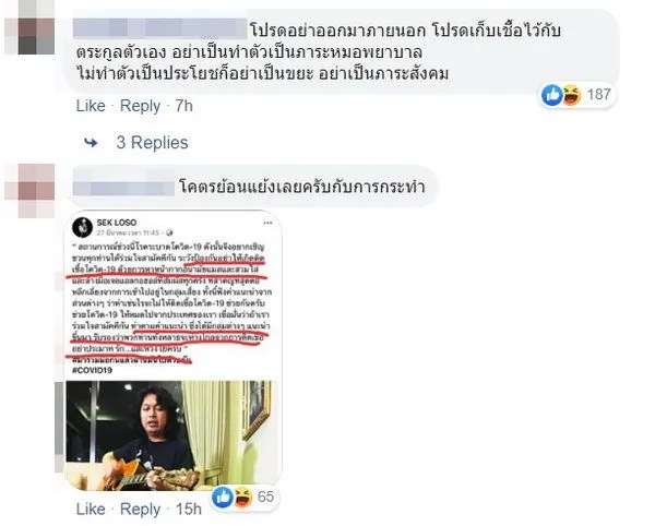 บางคนก็แสดงความคิดเห็นว่า ทำแบบนี้ไม่รับผิดชอบต่อสังคม ควรมีการเว้นระยะห่างทางสังคมตามคำสั่งรัฐ อีกทั้งคืนวันที่ 3 เมษายน ยังเป็นวันแรกของการประกาศใช้คำสั่งเคอร์ฟิว ห้ามประชาชนออกจากที่พักในช่วงเวลา 22.00-04.00 น. อีกด้วย