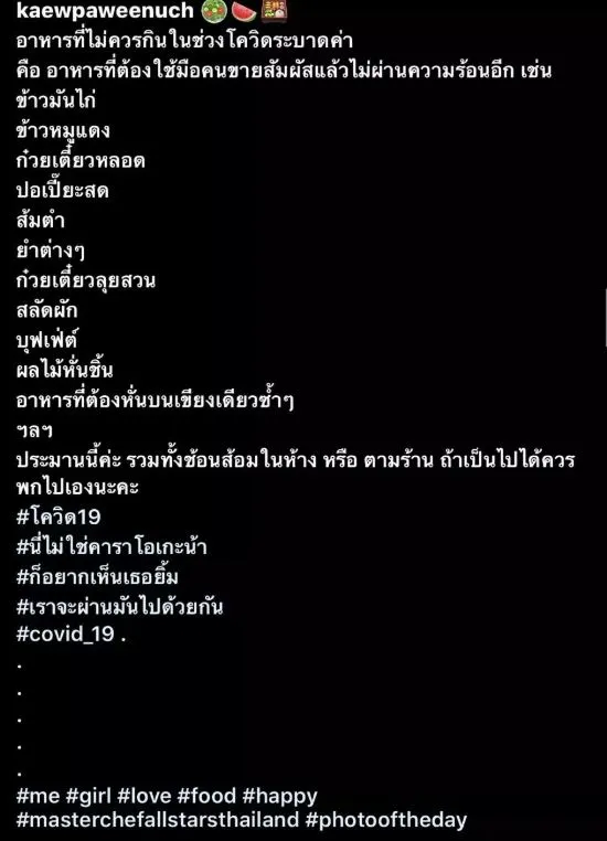 แก้ว มาสเตอร์เชฟ งานเข้า โพสต์อาหารควรเลี่ยงช่วงโควิด เจอแม่ค้ารุมด่าเละ