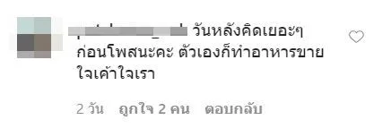 ซึ่งเธอได้ระบุรายการเมนูอาหารอย่างเจาะจงเพราะทุกเมนูนั้นไม่ใช่อาหารที่ปรุงสุกใหม่ๆ และบางร้านอาจถูกสัมผัสจากมือของพ่อค้าแม่ค้าโดยตรง จึงอาจเสี่ยงต่อการติดเชื้อ ทว่าจากโพสต์ของเธอทำให้บรรดาคนค้าขายโดยเฉพาะในรายอาชีพที่เธอระบุมานี้เกิดความไม่พอใจอย่างหนัก เพราะว่าในตอนนี้ก็ค้าขายได้น้อยลงมากแล้ว เมื่อคนดังอย่างเธอออกมาเตือนแบบนี้จะยิ่งทำให้คนหวาดกลัวและไม่กล้าซื้อรับประทาน แบบนี้บรรดาพ่อค้าแม่ค้าจะทำอย่างไร