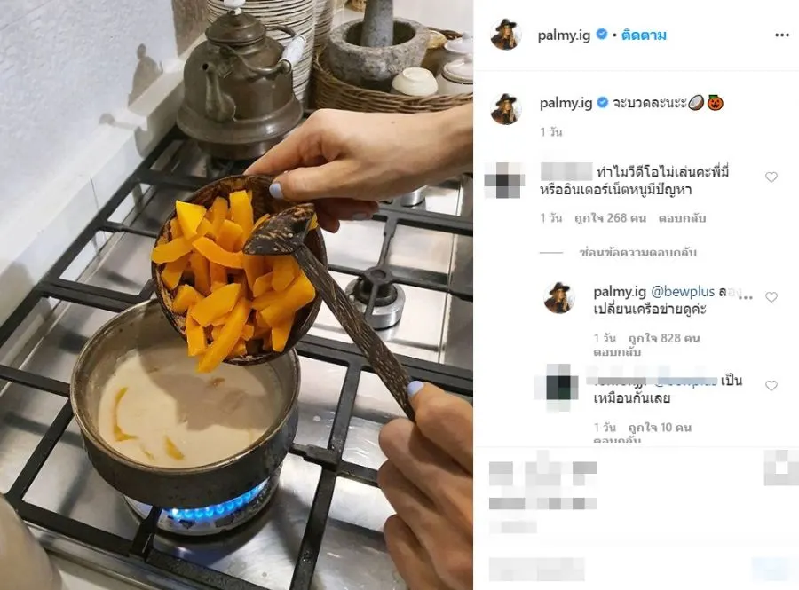 ปาล์มมี่ โชว์สกิลเข้าครัวทำ “บวดฟักทอง” พอได้อ่านคำตอบสุดพีค ทำเอาแฟนคลับฮาสนั่นทั้งไอจี