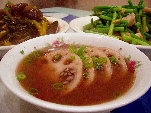 รากบัวมีความผูกพันกับคนจีนมาช้านาน นับเป็นพืชสมุนไพรอันดับต้นๆ ที่ต้องมีติดบ้านหรืออยู่ในเมนูอาหาร ตามตำราสมุนไพรจีน รากบัวมีฤทธิ์เย็นจัด รสหวาน รากบัวดิบมีสรรพคุณขับร้อน แก้อาการกระหายน้ำ อาเจียนเป็นเลือด เลือดกำเดาไหล