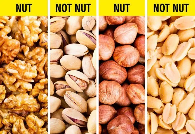 -ถั่วลิสงไม่ใช่ถั่วเปลือกแข็ง (nuts) ในความเป็นจริงมันเป็นถั่วและจัดเป็นพืชตระกูลถั่ว (legumes) อย่างไรก็ตามถั่วพิสตาชิโอ เม็ดมะม่วงหิมพานต์ และอัลมอนด์ก็เรียกว่าถั่วเปลือกแข็งอย่างผิดๆ ในทางเทคนิคแล้วพวกมันคือเมล็ด (seeds) © TheEm EmperorChing23 / Reddit