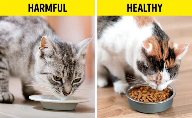 -นมเป็นขนมที่ดีที่สุดสำหรับแมว แต่ที่จริงแล้วแมวไม่ย่อยแลคโตสและเป็นอันตรายอย่างยิ่งสำหรับพวกมันเพราะอาจทำให้พวกมันมีอาการท้องเสีย © Minhaj Hassan / Quora