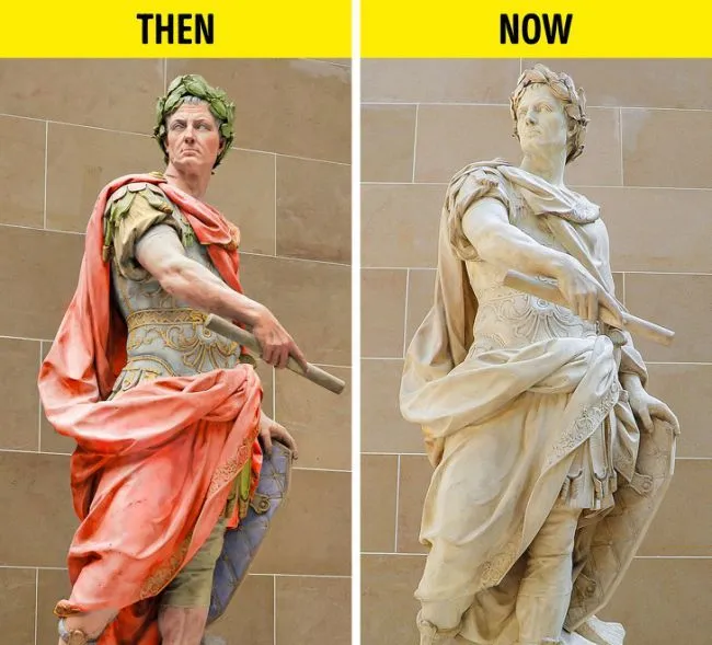 -รูปปั้นโบราณในกรุงโรมและกรีซที่จริงแล้วมีสีสันงดงาม แต่เราคุ้นเคยกับการเห็นหินอ่อนสีขาวเพราะสีจะจางหายไปตามกาลเวลา © Matt Miller / Quora