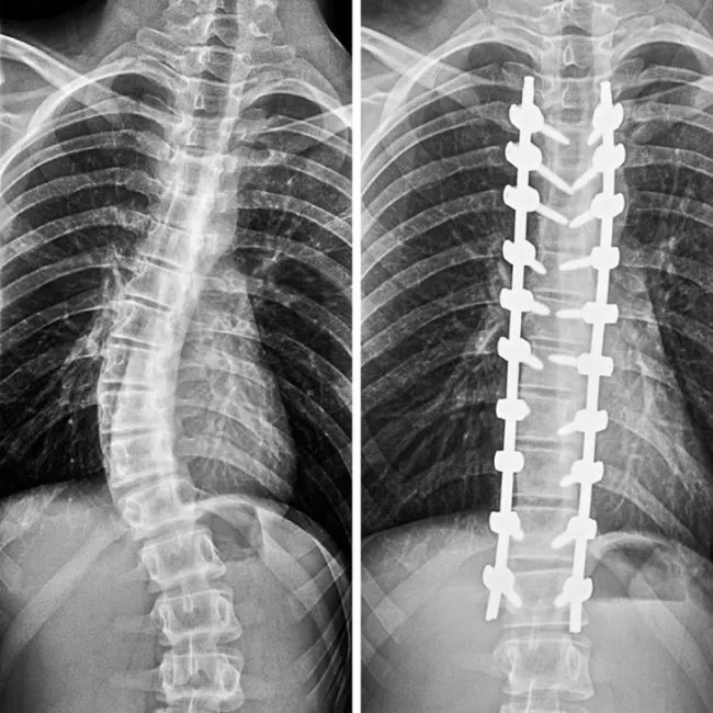 “ นี่คือลักษณะที่กระดูกสันหลังของฉันดูเหมือนจากผ่าแก้กระดูกคด”