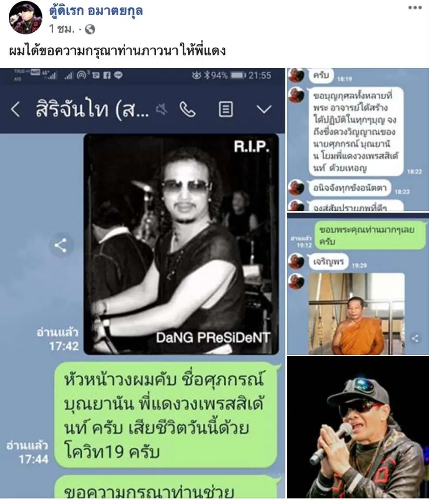 ไว้อาลัยต่อการจากไปของ นักดนตรีรุ่นใหญ่ “แดง ศุภกรณ์ บุญยานันต์” หัวหน้าวงมือคีย์บอร์ดวงเพรสซิเดนท์ และเป็นผู้แต่งเพลง “สาวบางโพ” ว่า “เสียใจต่อการจากไปของยอดฝีมือ พี่แดง เพรสซิเดนท์” ก่อนจะมีผู้เข้ามาแสดงความอาลัยเป็นจำนวนมาก
