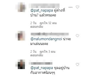 แต่ทว่าได้มีชาวเน็ตรายหนึ่งเข้ามาคอมเมนต์เอาไว้ว่า ผู้ค้างที่บ้าน? แล้วหรอคะ และยังมีชาวเน็ตรายอื่นเข้ามาตอบกลับ น่าจะมาเล่นนะคะ