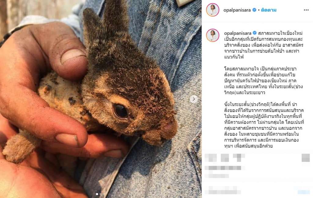โอปอล์ ระดมทุนช่วยเหลือ สภาลมหายใจเชียงใหม่และสัตว์ป่าที่ได้รับผลกระทบจากไฟป่า
