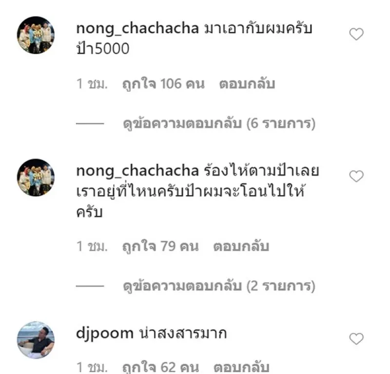 หลังจากนั้นก็มีเหล่าบรรดา ดารา เข้ามาคอมเม้นต์อยากจะช่วยคุณป้า อธิเช่น พี่โหน่ง ชะชะช่า และสาว พลอย เฌอมาลย์ ที่ยื่นมือมาช่วยเหลือ โดยได้ระบุข้อความกันว่า
