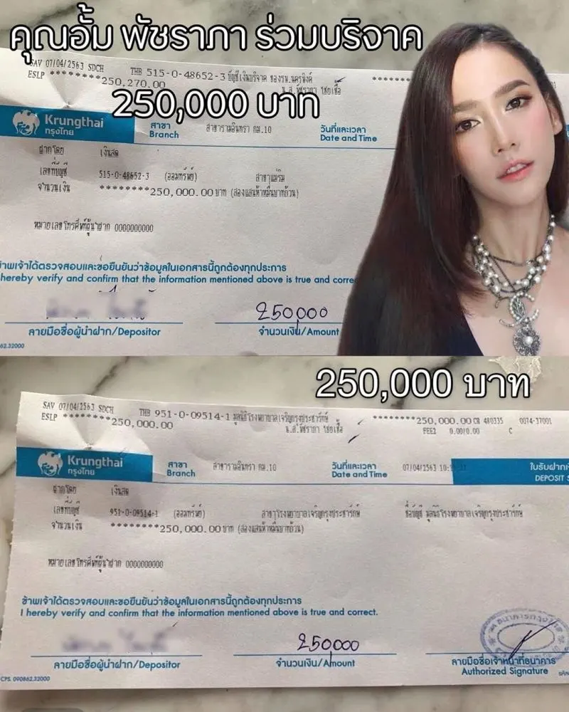 หลังจากนั้นแฟนคลับก็ได้ออกมาปกป้อง ด้วยการโพสต์สลิปการโอนเงินช่วยเหลือ โดยมีข้อความระบุว่า พี่อั้ม พัชราภา ร่วมบริจาคเงินจำนวน 250000 บาท ให้กับโรงบาลเจริญกรุงประชารักษ์ และ โรงบาลนครพิงค์ นี่เป็นเพียงสลิปส่วนหนึ่งที่ได้รับการเปิดเผย จากทางเฟซบุ๊คเพจโรงบาลและผู้เกี่ยวข้อง ขออนุโมทนาบุญกับพี่อั้มด้วยนะครับ