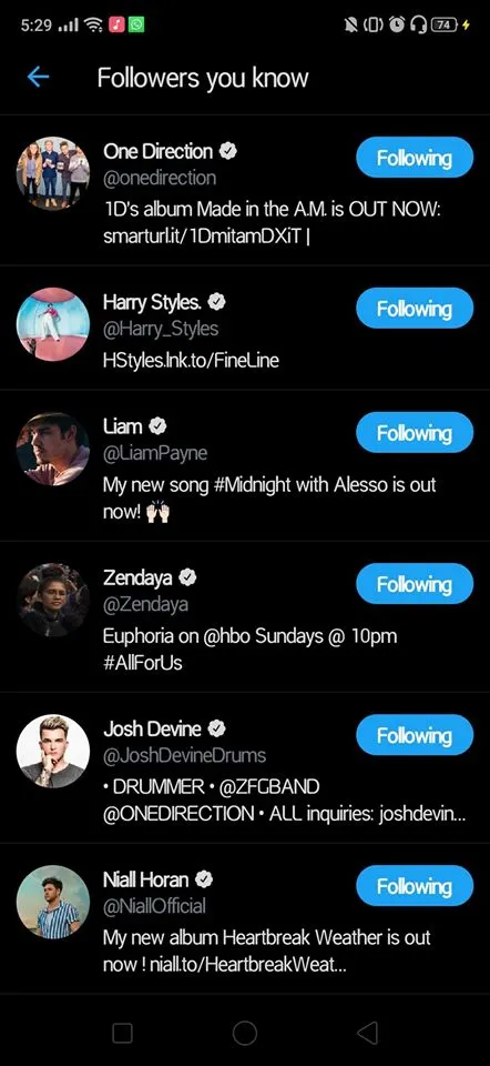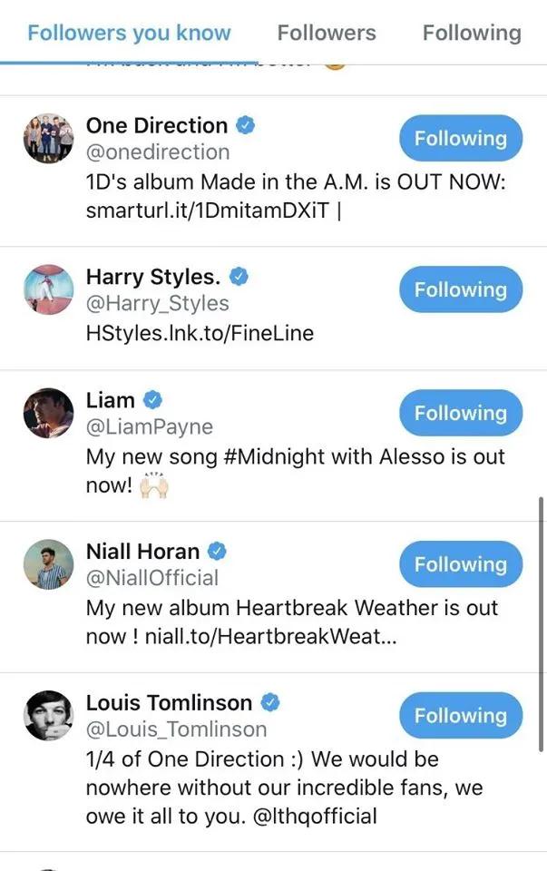 งานนี้ตอบไม่ได้ว่าใครเริ่มติดตาม "เซน มาลิก" ก่อน แต่แฟนคลับหลายคนมั่นใจว่าทุกอย่างเกิดขึ้นเมื่อเร็วๆ นี้ ไม่ใช่เป็นการติดตามมาตั้งแต่ต้นแน่นอน ถึงอย่างนั้น เซน มาลิก ยังไม่ติดตามทวิตเตอร์ของเพื่อนร่วมวงคนไหนเลย แต่ความเคลื่อนไหวนี้ก็ทำให้แฟนคลับเฮลั่นแล้ว