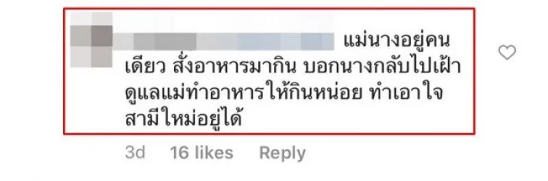 แม้ ปู่ไพวงษ์ จะไม่ได้ตอบอะไร แต่มีคนอื่นๆ มาร่วมคอมเมนต์ต่อ ไม่ว่าจะเป็น คิดว่าน่าจะอยู่เขาใหญ่ตลอดนะ ไอจีหมาไหลอยู่นี่ตลอด เมื่อวานลงรูปผลไม้อยู่ที่บ้าน กทม รวมถึงคอมเมนต์ที่บอกว่า แม่นางอยู่คนเดียว สั่งอาหารมากิน บอกนางกลับไปเฝ้าดูแลแม่ทำอาหารให้กินหน่อย ทำเอาใจสามีใหม่อยู่ได้
