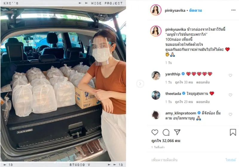 ถือได้ว่านี่เป็นอีกหนึ่งสถานการณ์ COVID19 ที่ทำให้เหล่าผู้ที่ประสงค์อยากมีส่วนร่วมในการช่วยเหลือประชาชนที่ได้รับผลกระทบจากสถานการณ์ COVID19 ได้ออกมาแสดงน้ำใจต่อกัน และหนึ่งในนั้นก็คือสาวพิ้งกี้ สาวิกา ที่มีทั้งความสวยและยังมีน้ำใจอีกด้วยค่ะ
