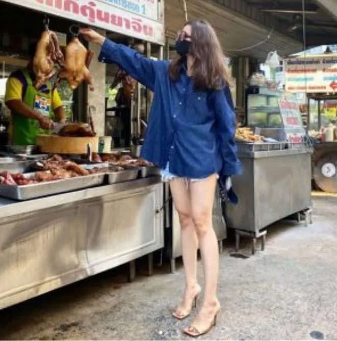 ก็อยากกินเป็ด “แอน ทองประสม” นุ่งสั้นใส่ส้นสูง เดินสวยๆ ไปสอยเป็ดข้างถนน แมสก์สีดำชิ้นเดียวเอาอยู่จ้า