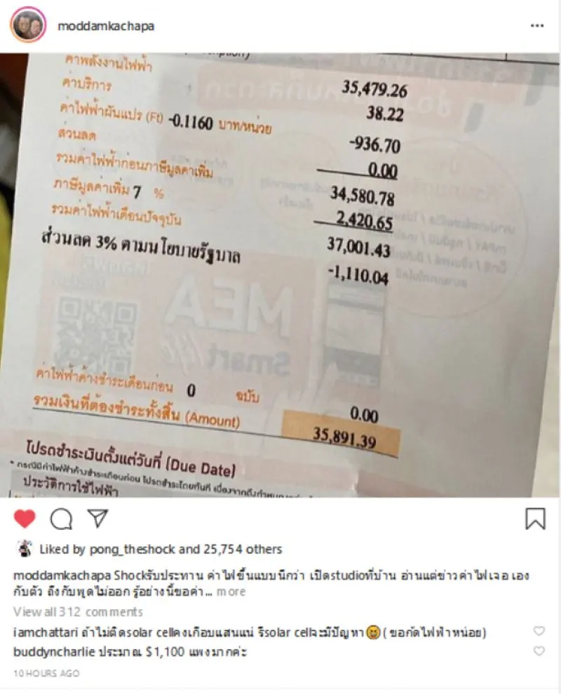 เชื่อว่าหลายคนคงไม่รู้จักพิธีฝีปากกล้า อย่าง มดดำ คชาภา ตันเจริญ ที่มีเสียงแหบเป็นเอกลักษณ์ในการอ่านข่าว โดยล่าสุดเธอได้โพสตื อินสตาแกรมโดยได้ระบุข้อความว่า Shockรับประทาน ค่าไฟขึ้นแบบนึกว่า เปิดstudioที่บ้าน อ่านแต่ข่าวค่าไฟเจอ เองกับตัว ถึงกับพูดไม่ออก รู้อย่างนี้ขอค่า หม้อไฟคืนบ้างดีกว่า เพราะ ว่าค่าหม้อไฟ ให้คนอื่นที่เดือดร้อนดีกว่า แต่ อันนี้คือขนาดตัวเอง ติด solar cell แบบเต็มอัตรา กลางวันมีแดด ใช้ไฟ solar cell แต่นี้ขึ้นมาทีเป็นหมื่น บางทีก็งง