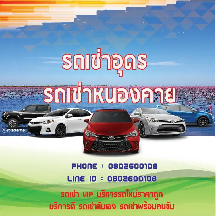 เช่ารถขับเองมีบริการรับส่งฟรี สนามบินอุดร รถเช่าอุดรราคาพิเศษถูกที่สุดเริ่มต้น 800บาทต่อวันเท่านั้น สามารถเช่ารถขับเอง รถเช่าอุดรอนุญาติให้เช่าแบบขับเอง ไม่ว่าจะเป็นรถยนต์รุ่น toyota honda และรุ่นอื่นๆ จะเป็นรถตู้ รถบัสรถทัวร์ พร้อมบริการด้วยความประทับใจแน่นอน เพราะทางเราเน้นการให้บริการ เพื่อให้ลูกค้าได้รับความสะดวกสบายได้มากที่สุด เช่ารถขับเองท่องเที่ยวคำชะโนดหรือหนองคาย ก็สามารถขับเองได้อย่างมีความสุข เอกสารหลักฐานก็น้อยมากๆ มัดจำเพียง 3,000ต่อวัน