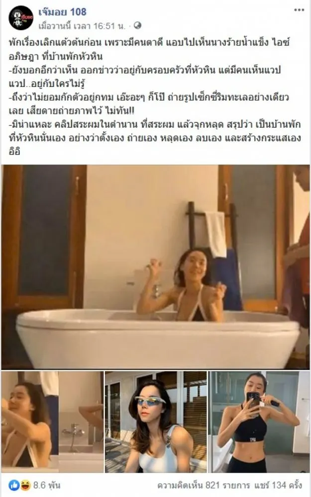 กลายเป็นอีกเรื่องราวที่ได้กลายเป็นประเด็นอยู่ในขณะนี้เลยทีเดียว สำหรับ สาวไอซ์ อภิษฎา ที่ล่าสุดได้มีชาวโซเชียลตาดี ได้แอบไปเห็น สาวไอซ์ ไม่ยอมกักตัว แอบไปเที่ยวกับบุคคลปริศนาที่บ้านพักหัวหิน โดยทางเพจ เจ๊มอย 108 ได้โพสต์ภาพดังกล่าว พร้อมระบุข้อความว่า