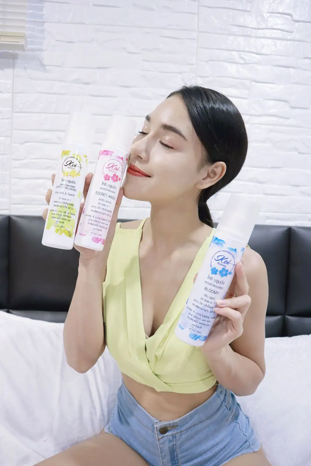 - KOI Blooming สีเหลือง กลิ่นซอฟ & รีแลกซ์ ให้ความรู้สึกสบาย สร้างความรู้สึกผ่อนคลาย เบาบาง กลิ่นนี้ก็หอมไม่แพ้กลิ่นอื่น เหมาะสำหรับผู้ที่รักในการจินตนาการ หรือต้องการสร้างบรรยากาศกับสิ่งรอบตัว