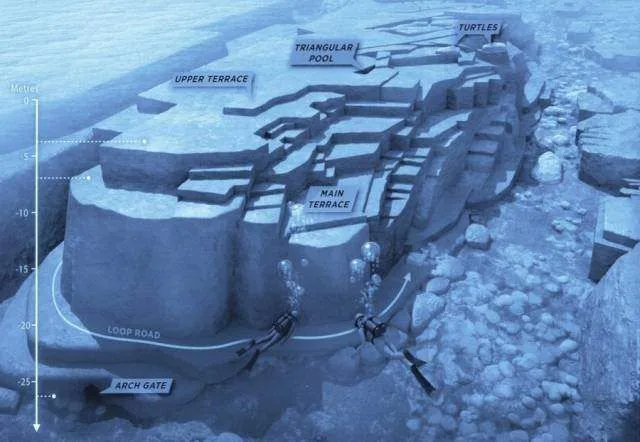 นักโบราณคดียังหาข้อโต้แย้งกันอยู่ว่า ที่แห่งนี้มนุษย์สร้างขึ้นหรือเปล่า รูปลักษณ์ของมันก็จะเป็นหิน ก้อนใหญ่ๆ สองก้อน วางซ้อนกัน อยู่ใต้มหาสมุทร ถูกเรียกว่า The Turtle หรือ เต่านั่นเอง