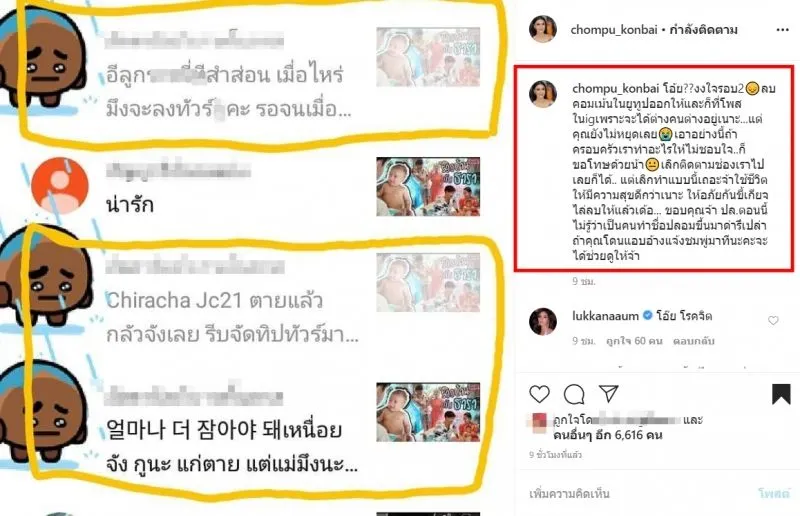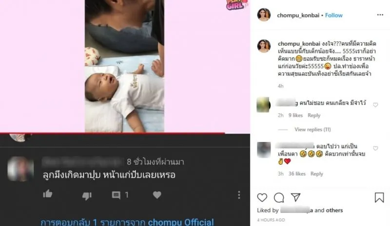 เรียกได้ว่าเป้นเรื่องราวที่มีคนต่างเข้ามาแสดงความคิดเห็นกันเป็นจำนวนมาก เมื่อในในไอจี chompu_konbai ถึงกับทนไม่ไหว หลังมีคนที่มีความคิดเห็นแบบนี้กับหนูน้อย 5555เราก็อย่าคิดมาก โดยก่อนหน้านี้ ได้มีชาวโซเชียลรายหนึ่งเข้ามาคอมเม้นท์ของบุตรสาวชมพู่ ก่อนบ่าย ว่าเกิดมาแล้ว หน้าเกินอายุไปเลย