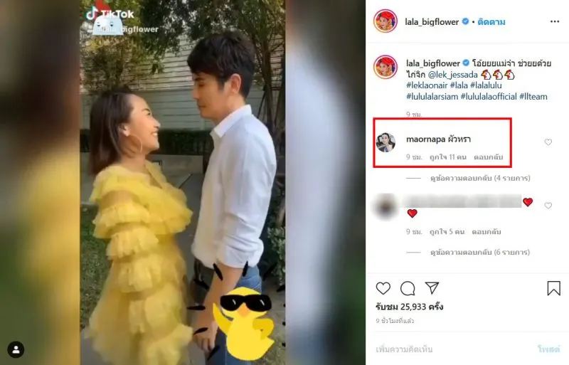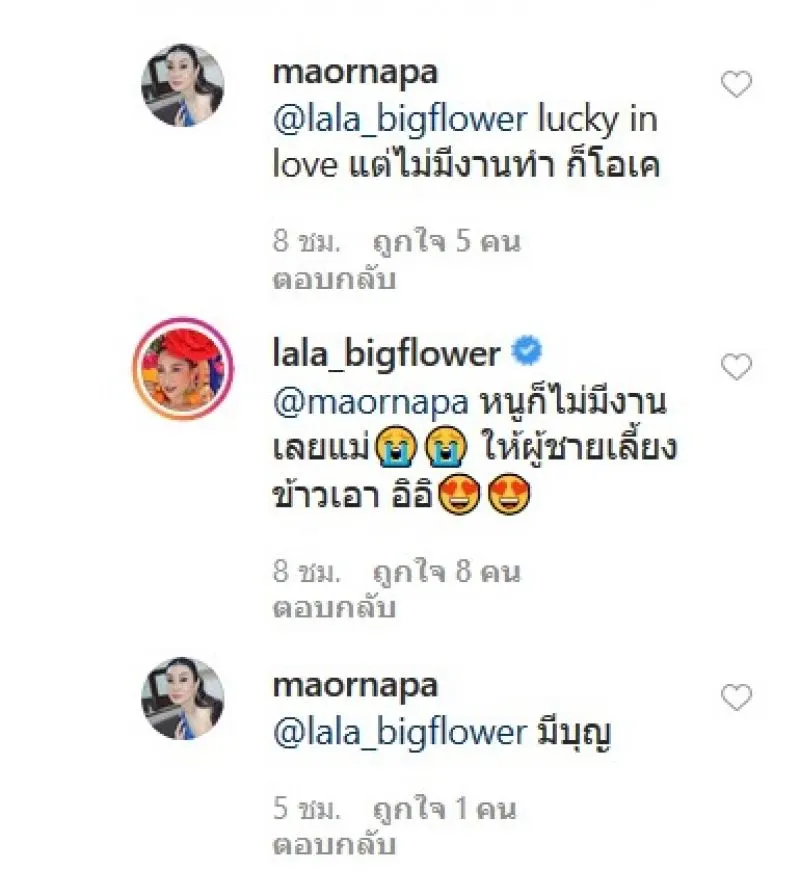 ซึ่งสาว ลาล่า ก็ได้ออกมาตอบคอมเม้นท์ ของ ม้า อรนภา ด้วยเช่นกัน
