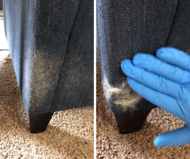 -ค่อยๆ กวาดขนออกจากเฟอร์นิเจอร์จนกว่าจะสะอาด