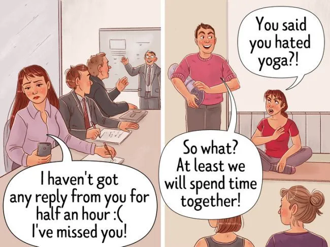 คนที่สนใจในความสัมพันธ์จะทำให้ดีที่สุดเพื่อทำให้คู่ของพวกเขารู้สึกมีความสุข ไม่ว่าจะเป็นการพบปะกับเพื่อน ๆ ไปร้านเสริมสวย หรือรับมือกับสิ่งต่างๆ