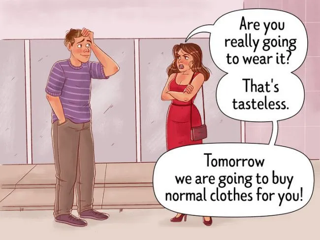“ คุณเคยลองไดร์ผมบลอนด์ของคุณหรือไม่?” หรือ“ ทำไมคุณถึงไม่ทำอาชีพวิศวกรจะได้เงินมากขึ้น!” พวกเขาอาจถามว่า“ คุณควรสวมอัญมณีราคาแพงสิงทำไมแต่งแบบนี้ “- คุณผู้หญิง! เขาจะพยายามปรับตัวคุณให้เข้ากับนิสัยและรสนิยมของตัวเอง และจะกระตุ้นการเปลี่ยนแปลงรูปลักษณ์หรือไลฟ์สไตล์ของคุณในทุก ๆ ทาง ในที่สุดเขาจะตระหนักว่าคุณไม่ได้เป็นคนที่สมบูรณ์แบบ ถึงแม้คุณจะทำตามกับความคิดเห็นของพวกเขา