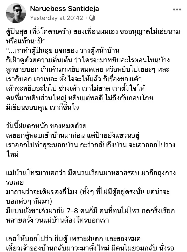 "ตู้ปันสุข (ที่โคตรเศร้า) ของเพื่อนผมเอง ขออนุญาตไม่เอ่ยนาม หรือแท๊กนะป้า