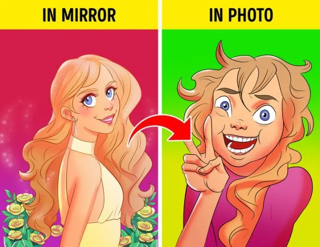 ทุกคนน่าจะรู้อยุ่แล้วว่าสิ่งที่เราเห็นเมื่อเรามองตัวเองในกระจกจะกลับด้านจากซ้ายไปขวา และเนื่องจากเรามองตัวเองในกระจกทุกวันเราจึงชินตาและรู้สึกดีกับภาพที่เราเห็นในกระจกนั้นเอง แต่กับภาพถ่ายที่เราไม่ค่อยได้เห็นเช่นรูปคุณในภาพถ่าย (ภาพถ่ายปรกติที่ไม่ใช้การใฃ้กล้องหน้าโทรศัพท์ถ่าย selfie เพราะการถ่ายแบบนี้จะได้ภาพเหมือนในกระจก) คุณจะรู้สึกว่าตัวคุณในรูปดูไม่ดีเท่ากับตัวจริง เพราะ คุณไม่ชินกับภาพที่เห็นนั้นเอง