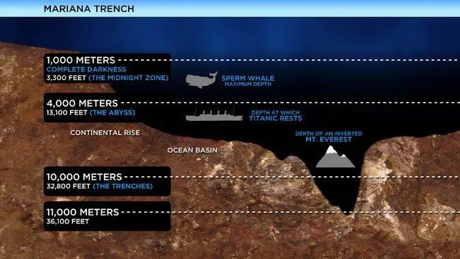 12. ความดันในจุดที่ลึกที่สุดในมหาสมุทร หนักพอๆ กับการที่คนๆ หนึ่ง พยายามยกเครื่องบินไอพ่นจำนวน 50 ลำ