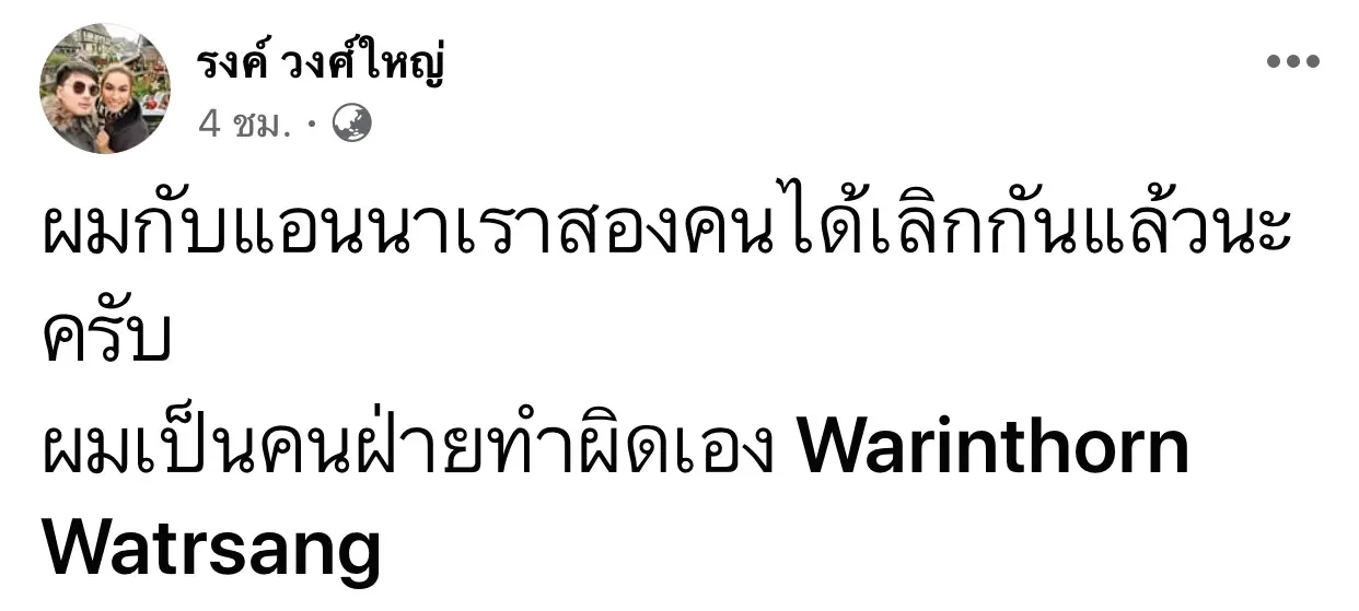 "ผมกับแอนนาเราสองคนได้เลิกกันแล้วนะครับ ผมเป็นคนฝ่ายทำผิดเอง"
