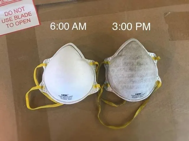 หน้ากากกรองฝุ่นของฉัน ก่อนและหลังการการทำงานในคลังสินค้า