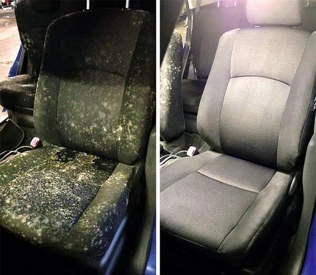 ก่อนและหลังการทำความสะอาดเบาะรถ