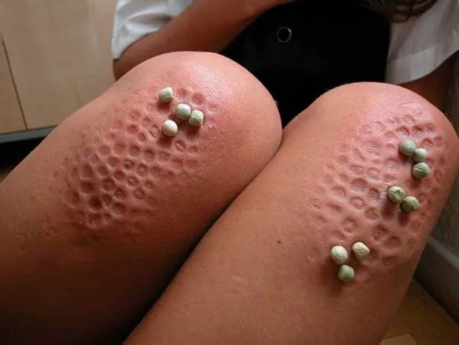 ภาพนี้ไม่ใช่โรคผิวหนังเป็นรูชวนสยองแต่อย่างใด แต่นี่คือภาพของนักเรียนคนหนึ่งที่ถูกคุณครูลงโทษด้วยการให้คุกเข่าลงบนถั่วแช่แข็ง ซึ่งการลงโทษดังกล่าวไม่ใช่เรื่องที่แปลกในโรงเรียนจีนหลายๆ แห่ง รวมถึงในฟิลิปปินส์ ซึ่งการลงโทษด้วยการคุกเข่าเพื่อให้สำนึกผิด ถือเป็นเรื่องปกติของชาวจีน คุณครูบางคนมักจะลงโทษเด็กในลักษณะนี้เพื่อให้รู้สึกสำนึกในสิ่งที่ทำผิดลงไป และกระตุ้นให้เด็กตั้งใจเรียนมากขึ้น