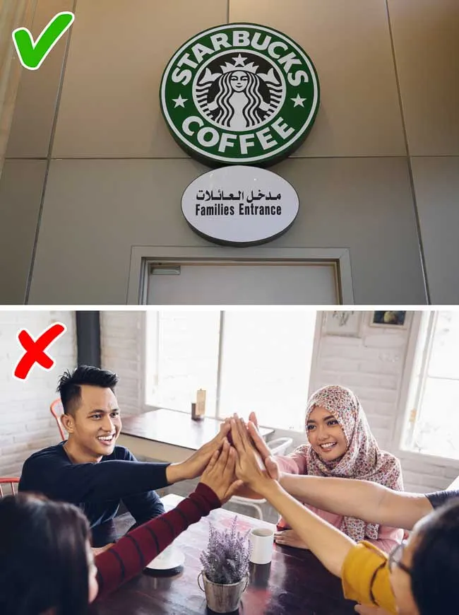 การแยกเพศเป็นสิ่งหนึ่งที่ผู้หญิงส่วนใหญ่ในซาอุดิอาระเบียต้องเผชิญเมื่อออกไปข้างนอกเพื่อป้องกันการสัมผัสกับผู้ชายที่ไม่รู้จัก ในสถานที่สาธารณะเช่นชายหาด,ขนส่งมวลชน และแม้แต่ในร้านอาหารก็ตาม โดยเฉพาะอย่างยิ่งสถานที่สำหรับการทานอาหารนั้นจะแบ่งเป็นส่วนสำหรับครอบครัว, ชายโสดและส่วนของผู้หญิงที่ยังไม่แต่งงาน แม้แต่ Pizza Hut, McDonald และStarbucks ก็ต้องทำตามกฎนี้เพราะไม่อยากเสียลูกค้าไป