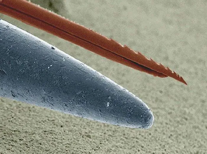 3. เหล็กไนผึ้ง vs เข็มหมุด ภาพจากกล้องจุลทรรศน์