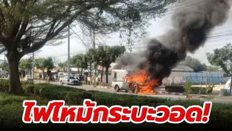 ระทึก! เพลิงไหม้กระบะวอดทั้งคันหน้า รพ.เกษมราษฎร์ บางแค โชคดีไร้ผู้บาดเจ็บ