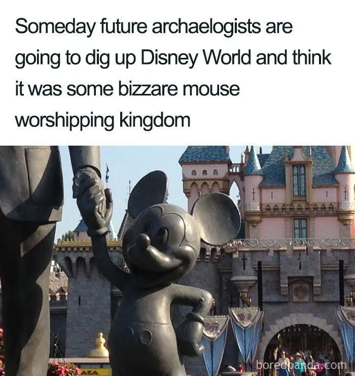 1. อีกหมื่นปีข้างหน้า นักโบราณคดีอาจขุดพบสวนสนุกดิสนีย์ แล้วคิดว่าเป็นอาณาจักร์ที่บูชาหนูหรืออะไรสักอย่าง